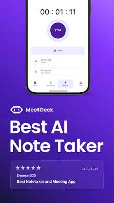 MeetGeek je aplikacija za snimanje glasa i AI bilježnik koji koristi umjetnu inteligenciju. Omogućuje transkripciju govora u tekst i snimanje zvuka na preko 50 jezika, olakšavajući vaše sastanke i bilješke.