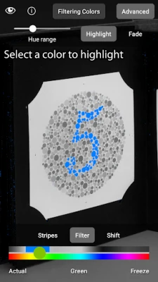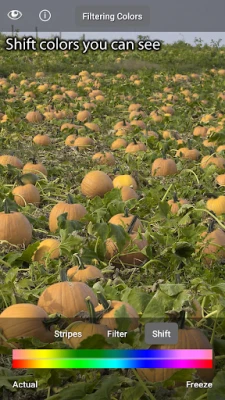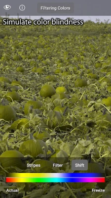 No, Color Blind Pal ide i korak dalje uz iznimno koristan način rada 'Filtering Colors'. Ako se borite s raspoznavanjem određenih boja, ova značajka prilagođava teško razaznatljive nijanse, transformirajući ih u one koje možete jasno vidjeti. Zamislite da bez napora uočavate narančastu bundevu na zelenom polju! S druge strane, ako imate normalan vid boja, možete koristiti 'Filtering Colors' za simulaciju različitih vrsta daltonizma, pružajući jedinstven uvid u perspektivu drugih. Fleksibilno se prebacujte između ova dva moćna načina rada pritiskom na "Inspecting Color" ili "Filtering Colors".