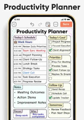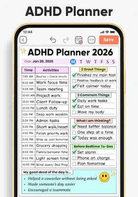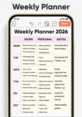 Otkrijte neograničene mogućnosti planiranja uz Daily Planner & Weekly Planner. Na raspolaganju su vam brojni predlošci: od detaljnih dnevnih i tjednih rasporeda, preko mjesečnih planera za strategiju, do specifičnih rješenja poput planera za rad, obroke, učenje ili fitness. Posebno smo se posvetili i potrebama korisnika s ADHD-om, nudeći im prilagođene predloške za lakše fokusiranje i organizaciju. S Daily Planner & Weekly Planner, svaka aktivnost, svaki sastanak i svaki projekt dobivaju svoje mjesto, osiguravajući da nikada ništa ne propustite i da ste uvijek korak ispred.