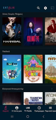 ERTFLIX vas poziva da zaronite u nepregledan ocean zabave, vodeća grčka digitalna platforma koja spaja magiju filma, ritam glazbe, puls vijesti i čisti užitak. Otkrijte sveobuhvatnu ponudu sadržaja dostupnog uživo i na zahtjev, sve na jednom mjestu. Bilo da ste ljubitelj vrhunskih filmskih hitova, europskih remek-djela, dokumentarnih avantura ili ste u potrazi za najnovijim domaćim i stranim serijama, ERTFLIX donosi tisuće mogućnosti izravno na vaš zaslon. To je vaša ulaznica u svijet neograničenog sadržaja, pažljivo kuriranog za svaki ukus i raspoloženje.