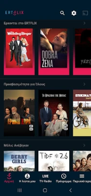 Dobrodošli u ERTFLIX! Otkrijte čarobni svijet tisuća izbora. ERTFLIX je vodeća grčka digitalna platforma koja spaja kino, glazbu, vijesti i zabavu. Uživajte u hit filmovima, europskom kinu, dokumentarcima, uzbudljivim serijama, 24-satnim vijestima, sportskim događajima i dječjem programu, sve dostupno uživo i na zahtjev.