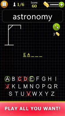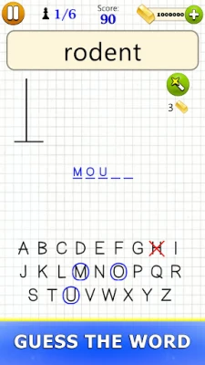 Uronite u svijet riječi i mentalne gimnastike uz Hangman - Word Game, ultimativnu aplikaciju za pogađanje riječi koja će izbrusiti vaš um! Pripremite se za zaraznu pustolovinu gdje svaka zagonetka predstavlja novi izazov za vaš vokabular i intuiciju. Vaš cilj je jednostavan: pogodite skrivenu riječ slovo po slovo. No budite oprezni – svaki pogrešan potez približava vas zlokobnim vješalima. Uživajte u uzbuđenju otkrivanja riječi i težite savršenstvu minimizirajući pogreške kako biste postigli najbolji rezultat!