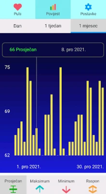 Bilo da ste posvećeni fitnessu i pratite zone otkucaja srca za sagorijevanje kalorija, oporavljate se nakon intenzivnog kardio treninga, ili jednostavno želite razumjeti svoj ritam nakon buđenja, ova aplikacija je vaš pouzdan suputnik. Posebno je vrijedna za osobe s dijabetesom, kardiovaskularnim oboljenjima, one pod stresom ili sve koji proaktivno brinu o svom zdravlju. Temeljita ispitivanja potvrđuju izvanrednu preciznost u mjerenju otkucaja srca u minuti. Aplikacija vam također pruža vizualni uvid kroz dinamički grafikon, pružajući jasniju sliku vašeg pulsa, različitu od složenih kardiograma.