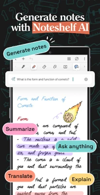 Prepustite inteligentnoj umjetnoj inteligenciji da vam olakša svakodnevicu. **Noteshelf AI** unutar aplikacije može bez napora generirati bilješke o bilo kojoj temi, sažimati cijele stranice, prevoditi tekst, objašnjavati složene pojmove i još mnogo toga. Vaše bilješke ostaju sigurne i uvijek dostupne; zaštitite ih lozinkama, Face ID-jem ili Touch ID-jem. Pristupite im na svim Android uređajima uz Google Drive sinkronizaciju. Automatski stvarajte sigurnosne kopije na popularnim oblačnim pohranama poput Google Drivea, OneDrivea, Dropboxa i WebDAV-a, te ih objavljujte na Evernoteu za pristup s bilo kojeg mjesta. Iako je **Noteshelf 3** besplatan uz neka ograničenja, prelazak na Premium otključava neograničene bilježnice, prepoznavanje rukopisa i digitalne dnevnike uz jednokratnu naknadu.