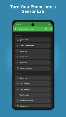 Pretvorite svoj telefon u moćan senzorski laboratorij. Ova aplikacija koristi ugrađene senzore pametnog telefona za prikupljanje, prikazivanje, snimanje i izvoz CSV podataka za analizu. Idealno za eksperimente iz fizike, inženjerstva i STEM-a u učionicama, laboratorijima i na terenu.