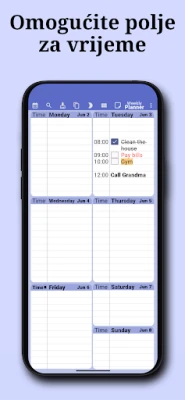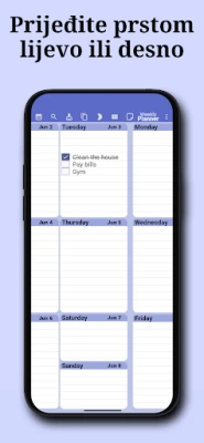 Zaboravite na razbacane rasporede i propuštene prilike. Predstavljamo vam sofisticirani digitalni alat koji transformira način na koji upravljate svojim vremenom. Iskusite neusporedivu jasnoću s jedinstvenim tjednim prikazom, omogućujući vam da svih sedam dana vidite na jednom zaslonu. Bez napora pregledajte sve svoje sastanke, obveze i nadolazeće događaje. Jednostavnim prelaskom prsta između tjedana, brzo se krećete kroz prošle ili buduće planove, čineći vaš kalendar dinamičnim sredstvom za postizanje optimalne organizacije. Bilo da planirate dan po dan ili cijeli tjedan unaprijed, ovaj planer pruža sveobuhvatnu podršku.