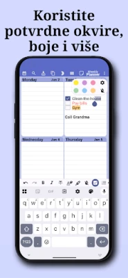 Osim preciznog planiranja, aplikacija nudi poseban odjeljak za bilješke, potpuno neovisan o vašem rasporedu. Koristite ga kao privatni prostor za brze misli, genijalne ideje ili kao osobni dnevnik za zabilješke o danu. Zahvaljujući bogatim opcijama oblikovanja teksta, vaše bilješke mogu biti kristalno jasne i vizualno privlačne. Personalizirajte svoje iskustvo mijenjajući teme, boje i izgled sučelja kako bi planer u potpunosti odražavao vaš jedinstveni stil. Vaši vrijedni podaci uvijek su sigurni zahvaljujući automatskom sigurnosnom kopiranju.